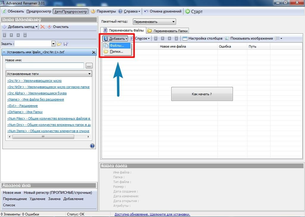 1) Скачиваем (ссылка), устанавливаем и запускаем программу Advanced Renamer.